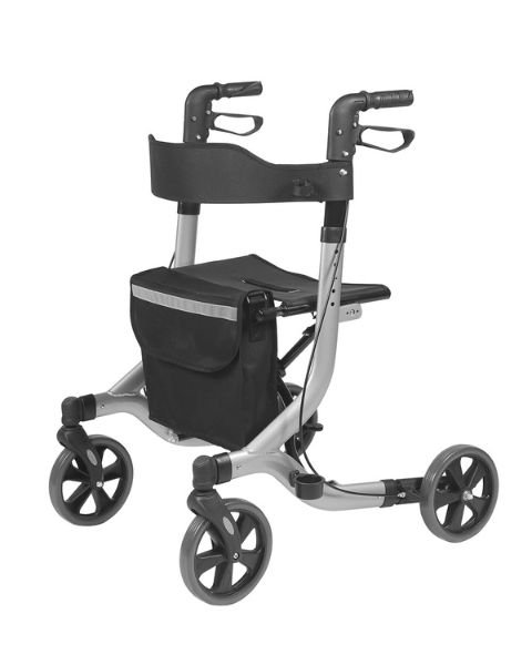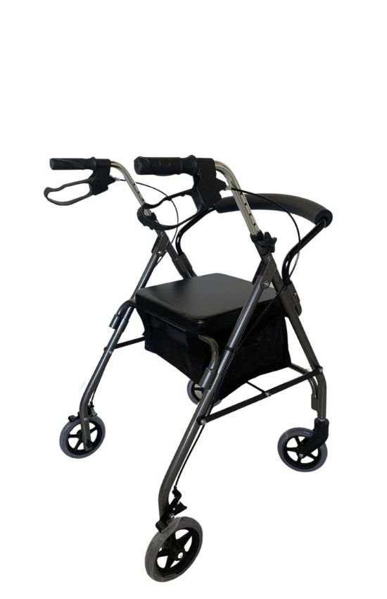 A Andador de 4 rodas oferece máxima estabilidade e conforto na locomoção. Equipado com freios, assento confortável e cesto para objetos, é ideal para uso diário. Compacto e dobrável, é fácil de transportar e armazenar.