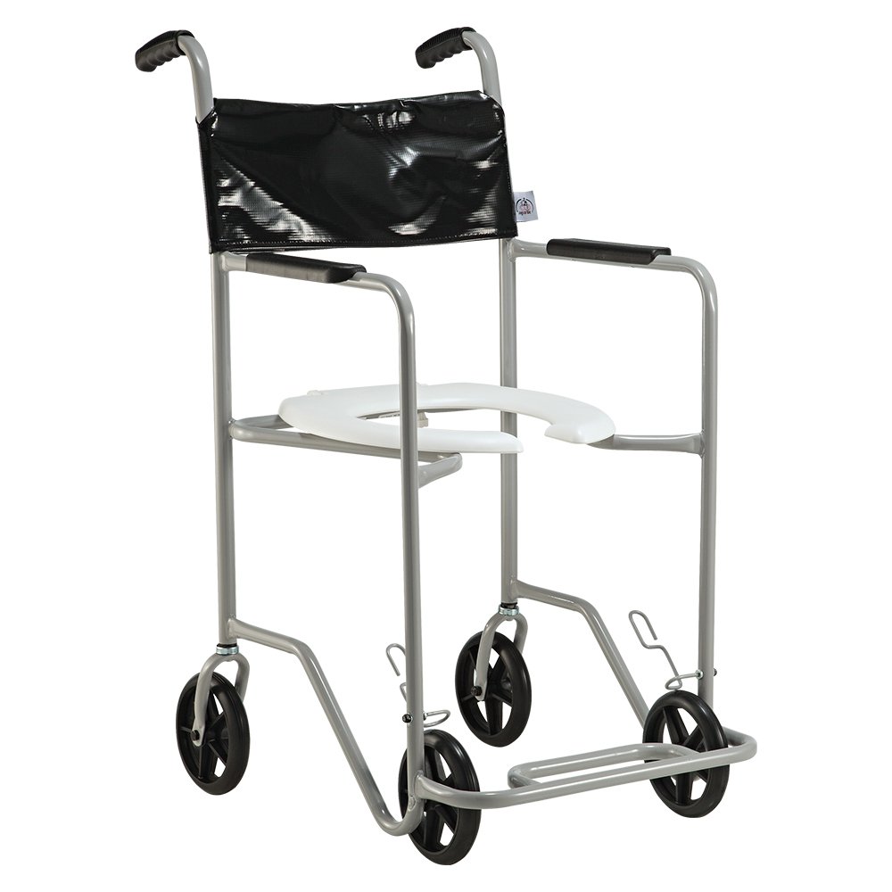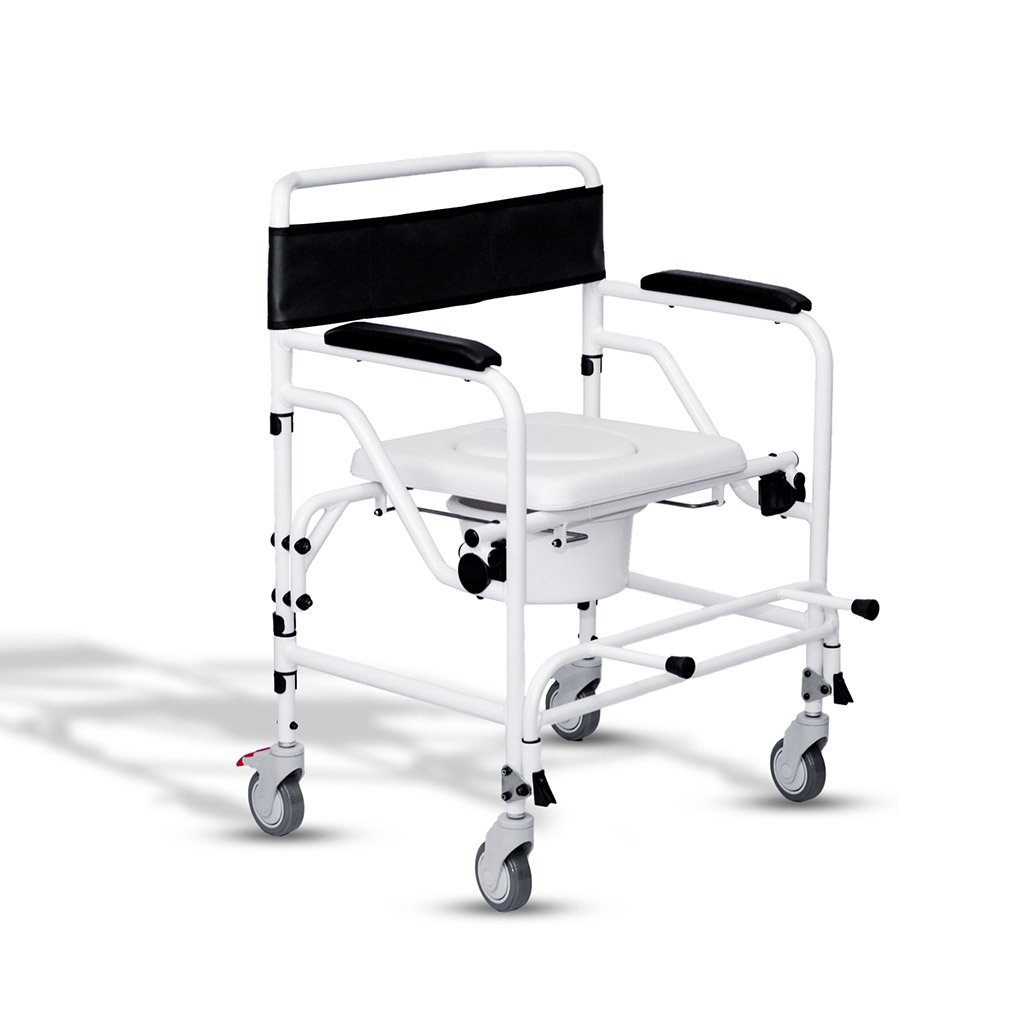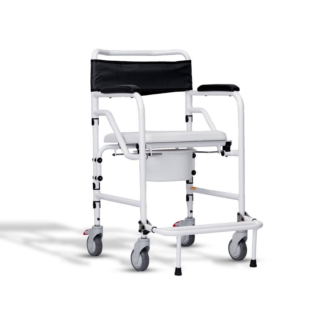 Suas rodas reforçadas e freios garantem segurança, enquanto seu design facilita o encaixe sobre vasos sanitários, tornando-a uma solução versátil para pessoas com mobilidade reduzida.